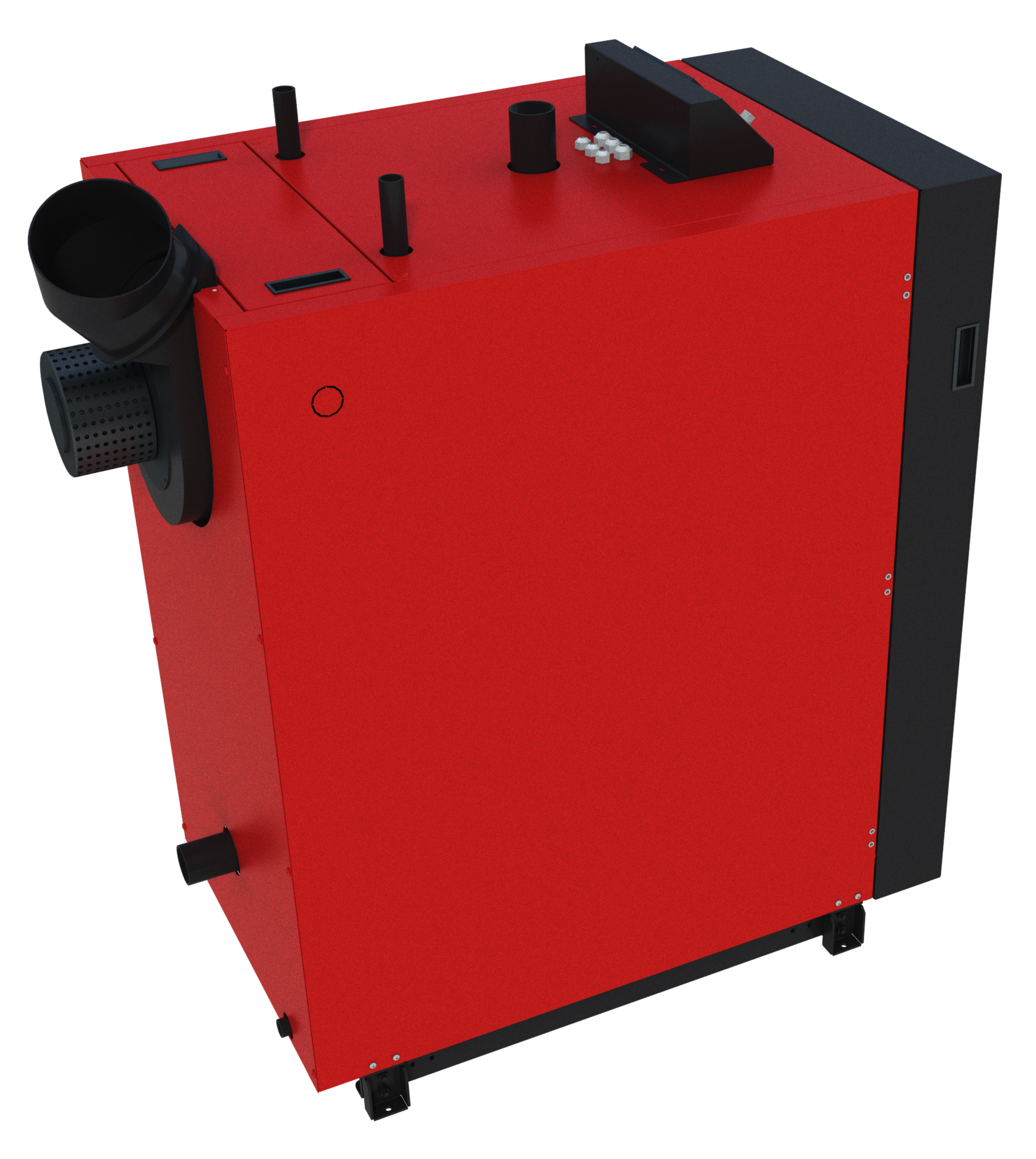 Wentylator wyciągowy stabilizuje proces spalania niezależnie od parametrów komina (wysokość, siła ciągu). Dzięki temu kocioł działa pewnie i powtarzalnie w każdych warunkach.