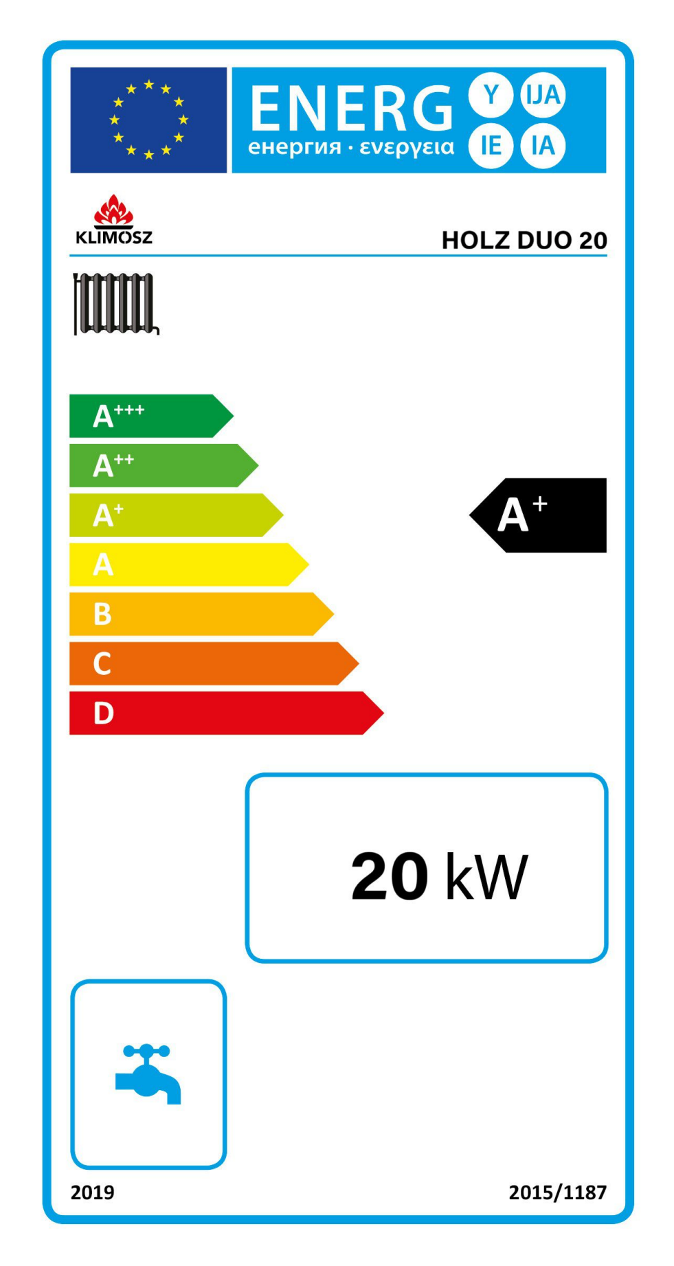 Wysoka klasa efektywności energetycznej A+ potwierdza, że Holz DUO pracuje oszczędnie, ekologicznie i spełnia rygorystyczne wymagania nowoczesnych systemów grzewczych.